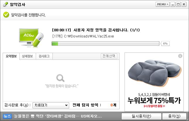 알약 실시간 감시 기능을 켜 놓으면 실시간 바이러스 검사를 하기 때문에 편리합니다. 그런데 이렇게 실시간 감사를 할 경우 화면 하단에 알리미나 광고 같은 내용이 표시가 됩니다.