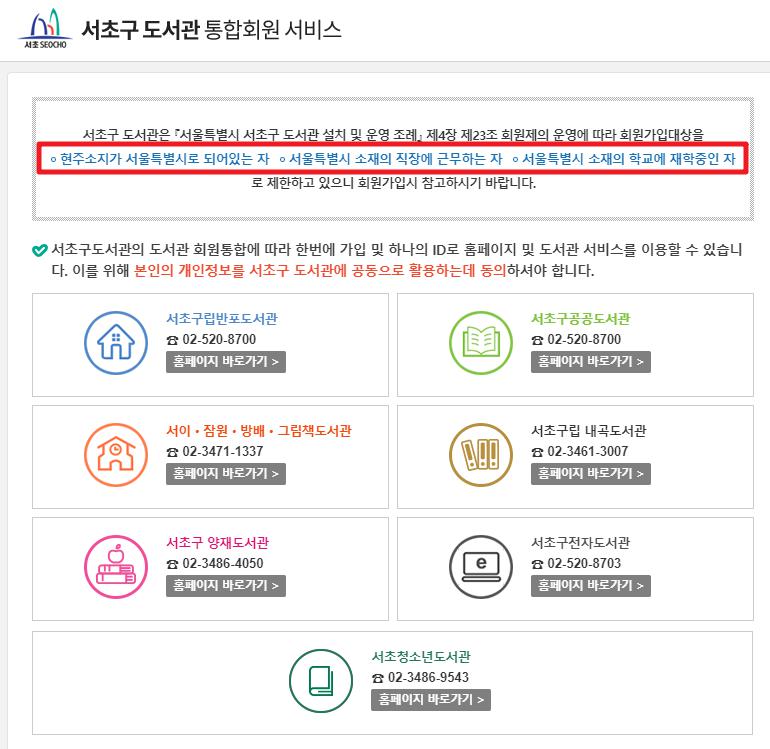 서울과 연관이 있는 사람만 가입이 가능한 서초구 도서관