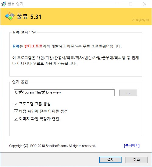 알씨의 설치화면 입니다. 기본적인 라이센스 정책을 보여주고 있습니다.