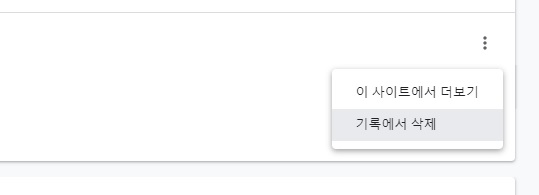 이렇게 체크를 하고 삭제를 눌러주면 됩니다. 여러 사이트들을 삭제 할때 아주 편리하게 이용할 수가 있습니다. 혹은 이렇게 체크박스를 선택하고 삭제를 하는것이 번거롭다면 화면 오른쪽에 있는 점 3개 버튼을 이용해서 삭제를 할 수가 있습니다.