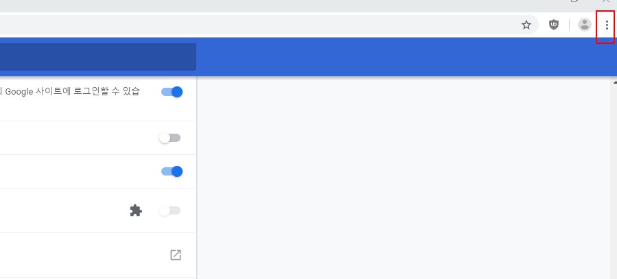 먼저 크롬 브라우저 상에서 오른쪽 상단에 점 3개로 표시된 버튼을 클릭해줍니다.
