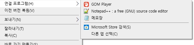 만약 연결된 프로그램이 있다면 이렇게 바로 열어 줄수가 있습니다. 위에 등록된 화면을 보면, 곰플레이어, 메모장, Notepad++ 같은 프로그램을 통해 해당 파일을 열어볼 수가 있습니다.
