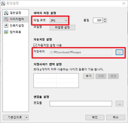 저장위치를 바꿔주면 이후 캡처된 이미지는 해당 폴더로 자동으로 저장이 됩니다.