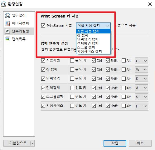 개인적으로는 지정영역 캡처를 지정해서 사용을 하고 있습니다. 프린트 스크린키 자체가 윈도우 기본키이기 때문에 어떻게 동작을 하는지 꼭 테스트를 해보시기 바랍니다.
