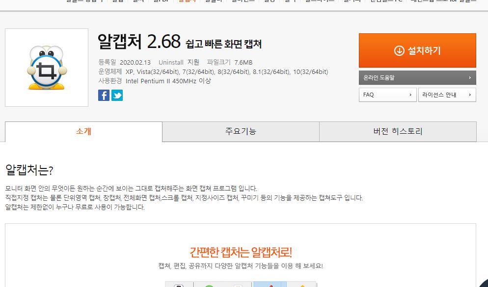 기업, 개인 모두 무료 사용이 가능한 알캡처