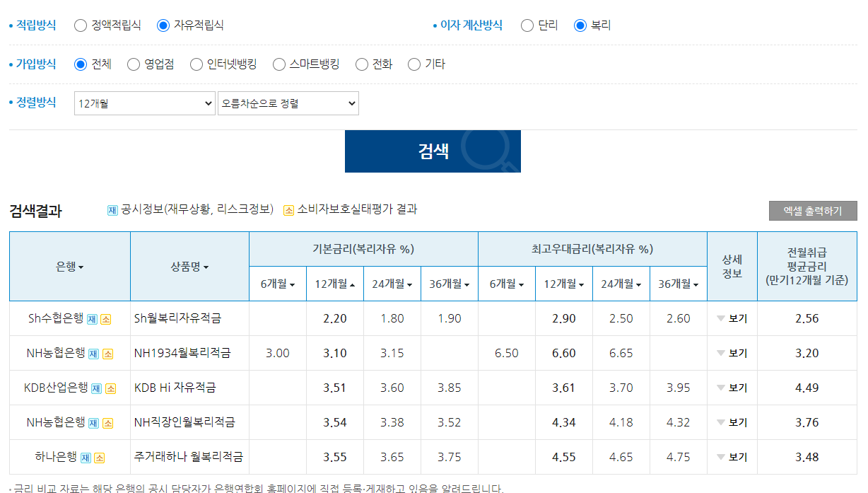 다음은 은행연합회에서 제공하는 금리 비교 서비스 입니다.